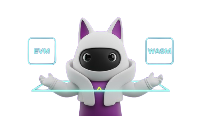 Developers can deploy using Solidity (EVM) or Rust/AssemblyScript (WASM) on the same network. Smart contracts run in parallel, enabling multi-language interoperability and higher execution throughput.